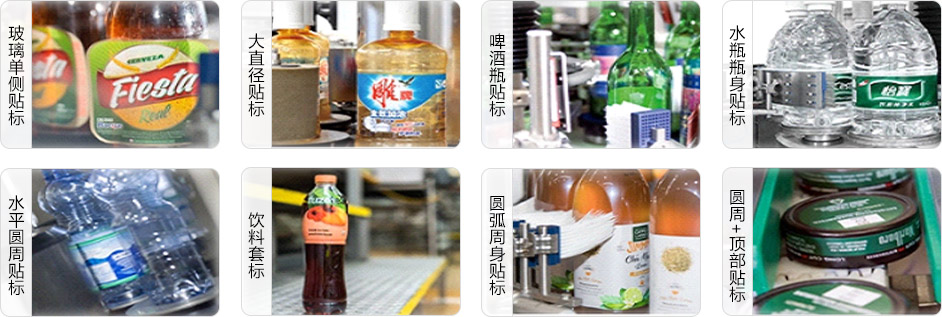 应用实例:PET圆瓶贴标、塑料瓶贴标、食品罐头等。 |