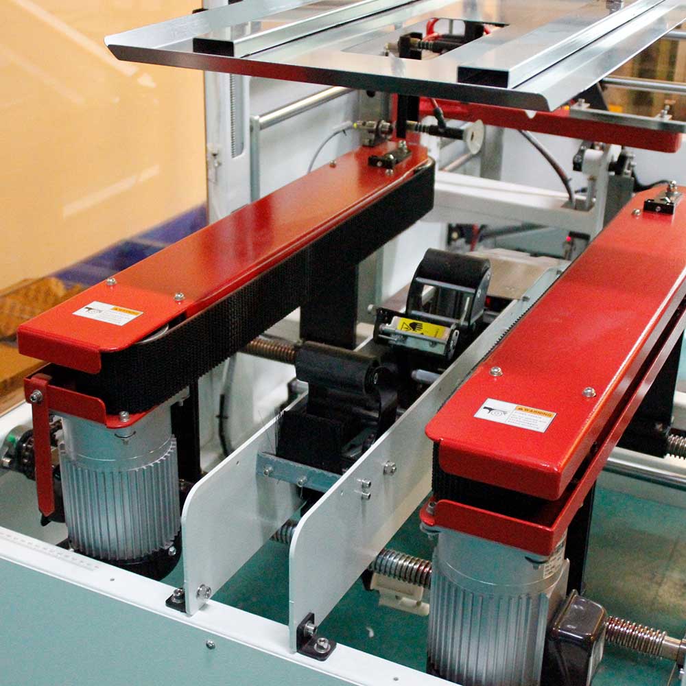 全机采用凸轮连续系统,机械运转精确,稳定,耐用成型及封箱采用无段变速控制,可任意调整速度,节省工时.